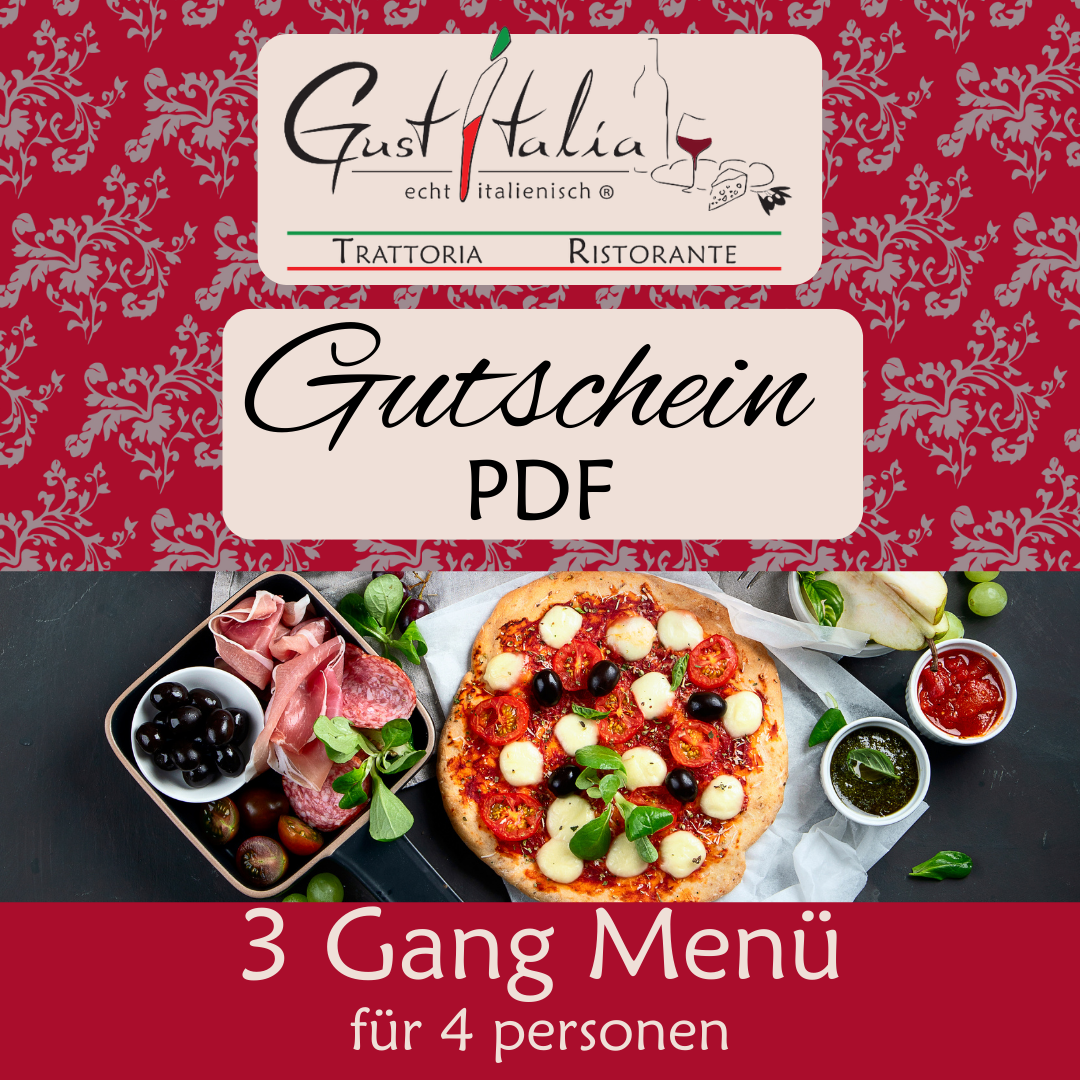 Ein Restaurant-Gutschein von unseren Trattoria Gustitalia macht einfach jeden glücklich! Vor allem dann, wenn es sich um einen Menü-gutschein für unsere ausgezeichnete Küche handelt. Mit diesem Gutschein erhält der glückliche Empfänger ein Komplettpaket aus 3-Gang Menü inklusive alkoholischer, gemischter oder alkoholfreier Getränkebegleitung, natürlich Wasser und Kaffee. Wenn das mal nicht das perfekte Geschenk ist!