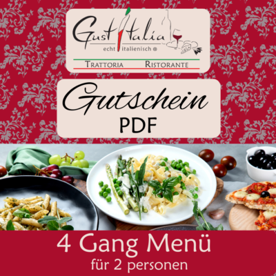 Ein Restaurant-Gutschein von unseren Trattoria Gustitalia macht einfach jeden glücklich! Vor allem dann, wenn es sich um einen Menü-Gutschein für unsere ausgezeichnete Küche handelt. Mit diesem Gutschein erhält der glückliche Empfänger ein Komplettpaket aus 4-Gang Menü inklusive alkoholischer, gemischter oder alkoholfreier Getränkebegleitung, natürlich Wasser und Kaffee. Wenn das mal nicht das perfekte Geschenk ist!