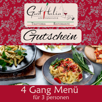 Ein Restaurant-Gutschein von unseren Trattoria Gustitalia macht einfach jeden glücklich! Vor allem dann, wenn es sich um einen Menü-Gutschein für unsere ausgezeichnete Küche handelt. Mit diesem Gutschein erhält der glückliche Empfänger ein Komplettpaket aus 4-Gang Menü inklusive alkoholischer, gemischter oder alkoholfreier Getränkebegleitung, natürlich Wasser und Kaffee. Wenn das mal nicht das perfekte Geschenk ist!