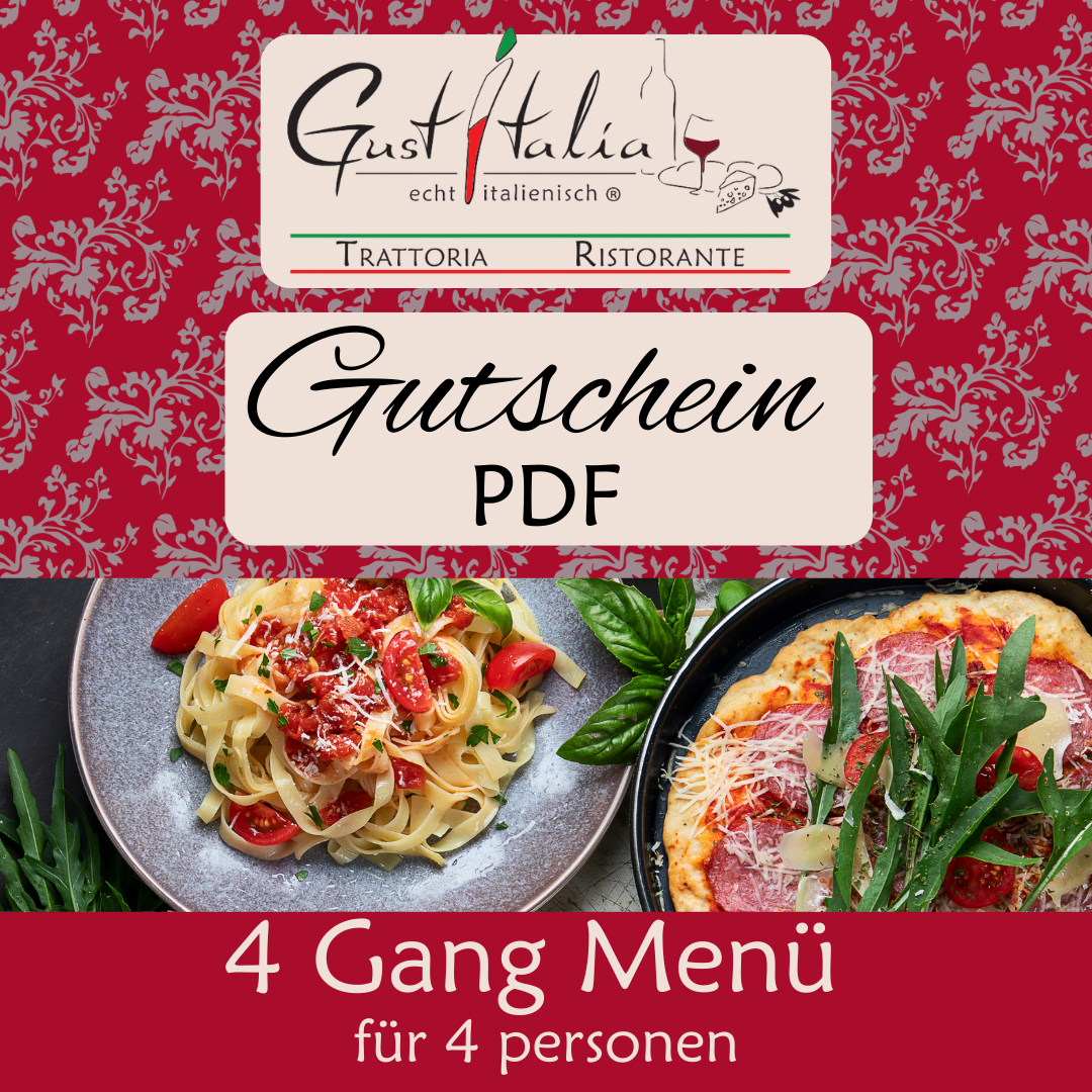 Ein Restaurant-Gutschein von unseren Trattoria Gustitalia macht einfach jeden glücklich! Vor allem dann, wenn es sich um einen Menü-Gutschein für unsere ausgezeichnete Küche handelt. Mit diesem Gutschein erhält der glückliche Empfänger ein Komplettpaket aus 4-Gang Menü inklusive alkoholischer, gemischter oder alkoholfreier Getränkebegleitung, natürlich Wasser und Kaffee. Wenn das mal nicht das perfekte Geschenk ist!