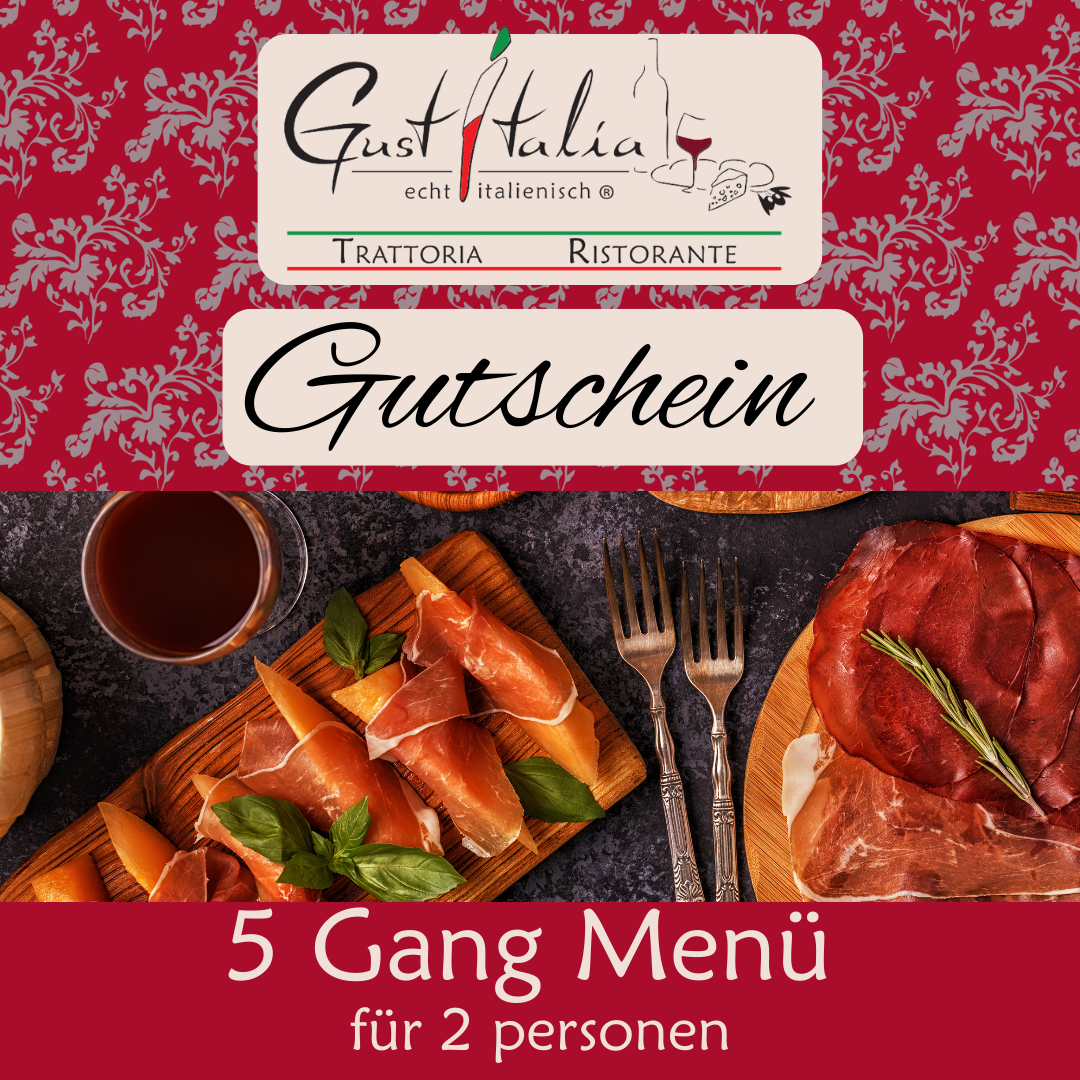 Ein Restaurant-Gutschein von unseren Trattoria Gustitalia macht einfach jeden glücklich! Vor allem dann, wenn es sich um einen Menü-Gutschein für unsere ausgezeichnete Küche handelt. Mit diesem Gutschein erhält der glückliche Empfänger ein Komplettpaket aus 5-Gang Menü inklusive alkoholischer, gemischter oder alkoholfreier Getränkebegleitung, natürlich Wasser und Kaffee. Wenn das mal nicht das perfekte Geschenk ist!