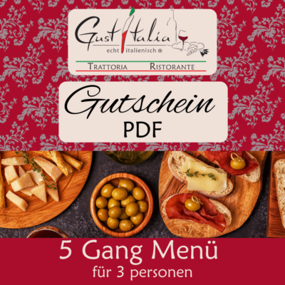 Ein Restaurant-Gutschein von unseren Trattoria Gustitalia macht einfach jeden glücklich! Vor allem dann, wenn es sich um einen Menü-Gutschein für unsere ausgezeichnete Küche handelt. Mit diesem Gutschein erhält der glückliche Empfänger ein Komplettpaket aus 5-Gang Menü inklusive alkoholischer, gemischter oder alkoholfreier Getränkebegleitung, natürlich Wasser und Kaffee. Wenn das mal nicht das perfekte Geschenk ist!